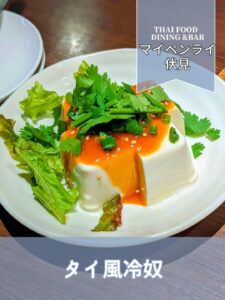 タイ風冷奴は、コク旨辛タレ、日本の豆腐、タイ風料理の三位一体で、新しい美味しさを提供しています。ぜひ当店でこの絶妙な味わいをご堪能ください。