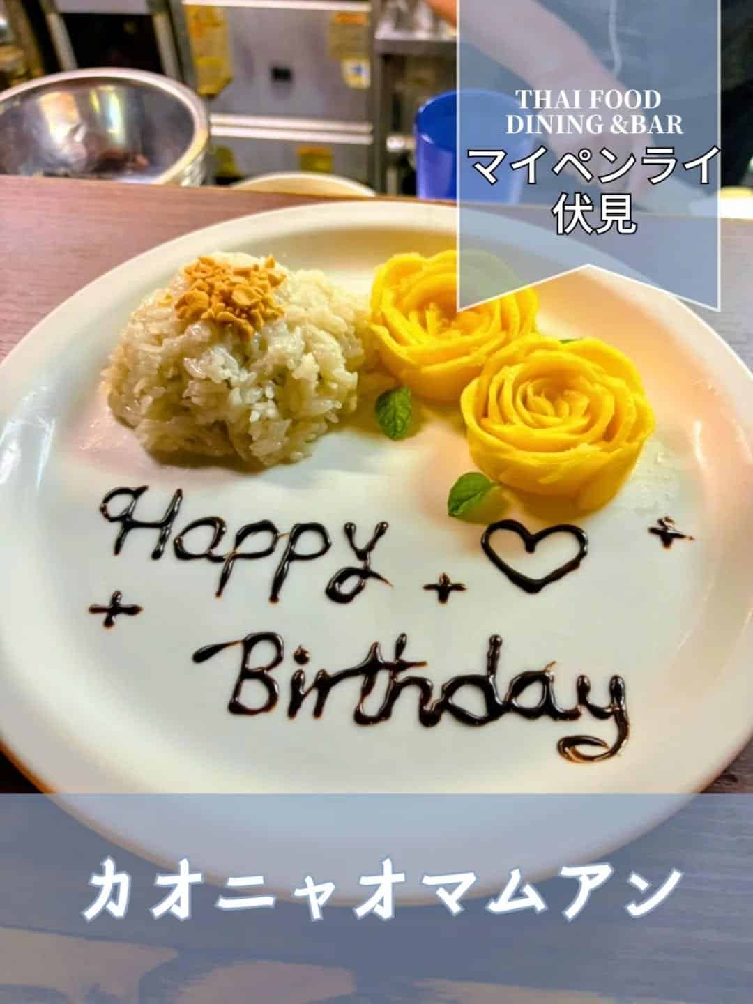 カオニャオマムアンをバースデープレートにしてもご提供も可能です!ご希望の際は事前にご予約下さい♪