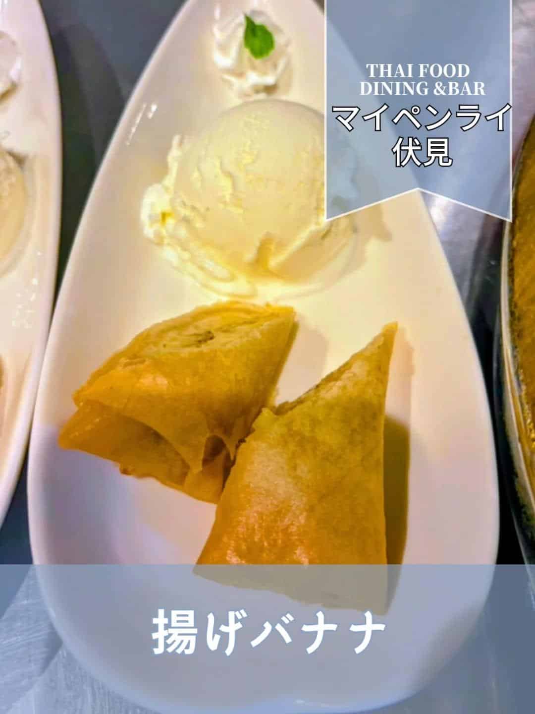 当店では、タイデザートとして人気の揚げバナナを提供しています。揚げバナナは、熱々のサクサクした衣に包まれた甘くてジューシーなバナナが特徴的です。一度食べたらやみつきになる美味しさをお楽しみいただけます。