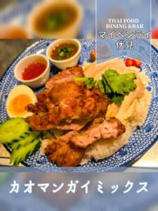 カオマンガイミックスは、タイ料理の一つで、蒸し鶏と揚げ鶏を乗せた料理です。シンプルな中にも豊かな味わいが楽しめます。