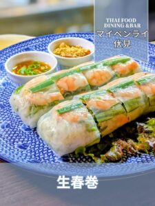 マイペンライ伏見で落ち着いた雰囲気を楽しみながら、生春巻と特製ソースの組み合わせを堪能しましょう。その後は、他の人気メニューも注文してタイ料理の楽しみを存分に味わいましょう。最後に、デザートに甘いタイスイーツをシェアして、笑顔あふれる素敵なデートを締めくくりましょう。